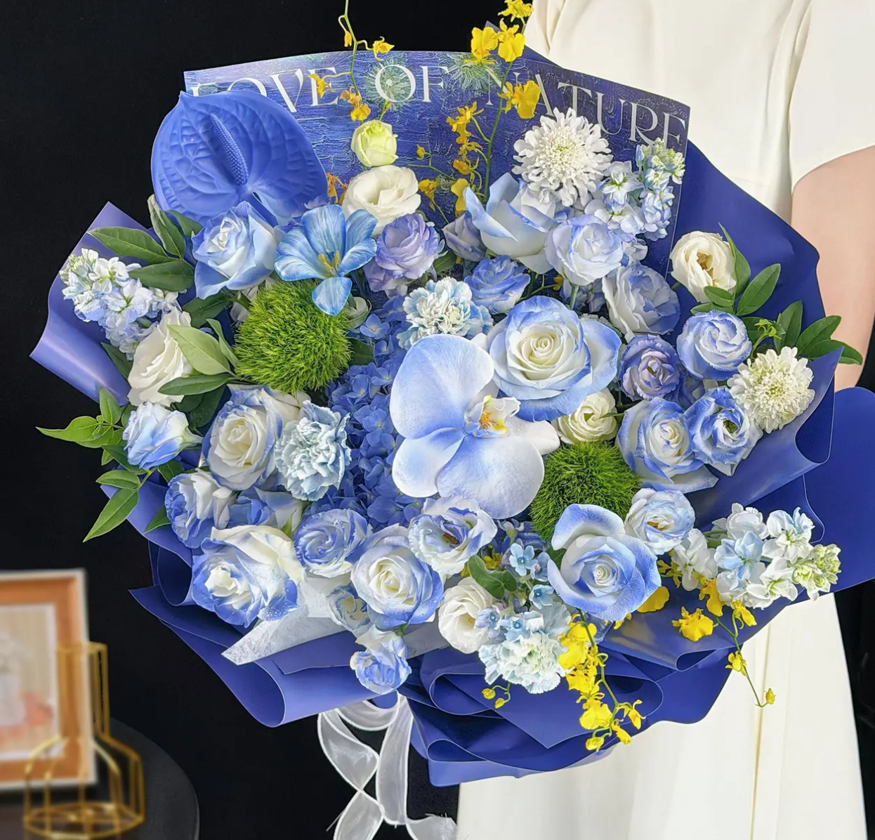 【蓝色海洋】碎冰蓝玫瑰蝴蝶兰混搭绣球花束花漾推荐鲜花送女友鲜花配送上门