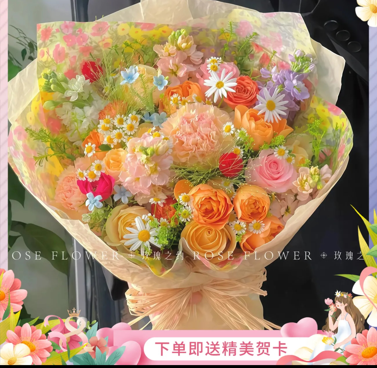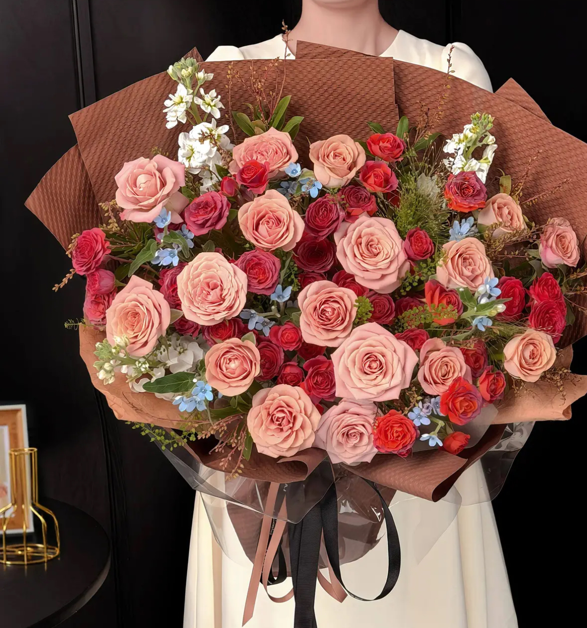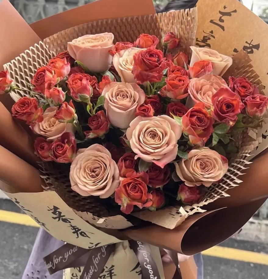 【海棠未雨】卡布奇诺玫瑰混搭巧克力泡泡鲜花约会花束送女友送朋友花店送花上门