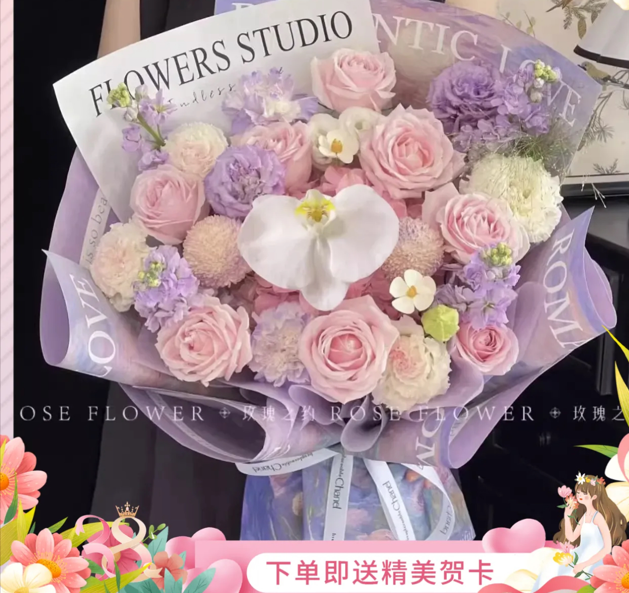 【刚好遇见你】表白花束女神玫瑰蝴蝶兰