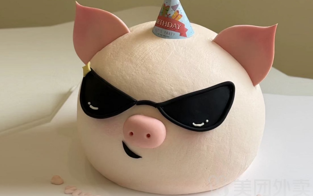 网红定制小动物墨镜小猪翻糖蛋糕立体生日蛋糕
